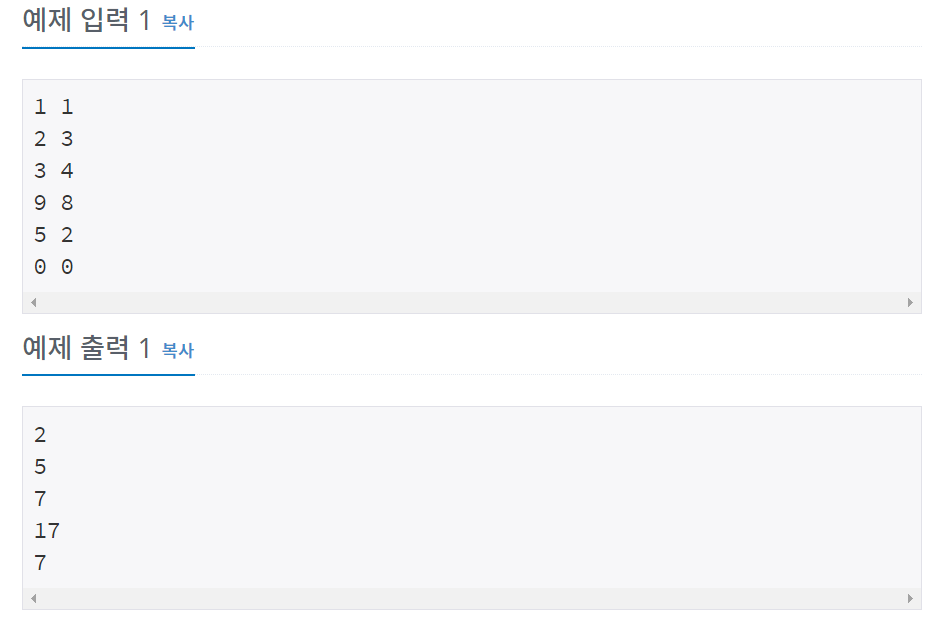 해당 문제 : https://www.acmicpc.net/problem/10952