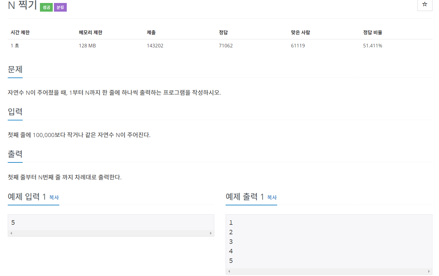 해당 문제 (2741) : www.acmicpc.net/problem/2741
