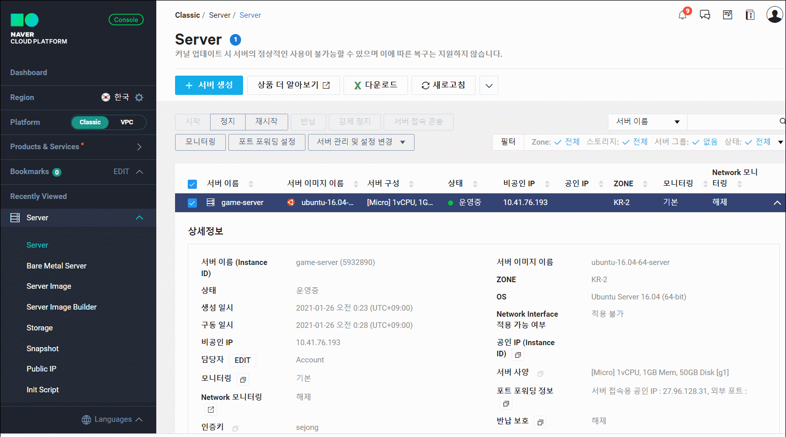 | 네이버 클라우드 플랫폼 - 서버 반납 (2) | 2022.01.02 |