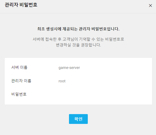 일단, 관리자 비밀번호를 설정할 서버를 클릭한 후 그 위에서 우클릭을 하면, '관리자 비밀번호 확인' 이 있다.
