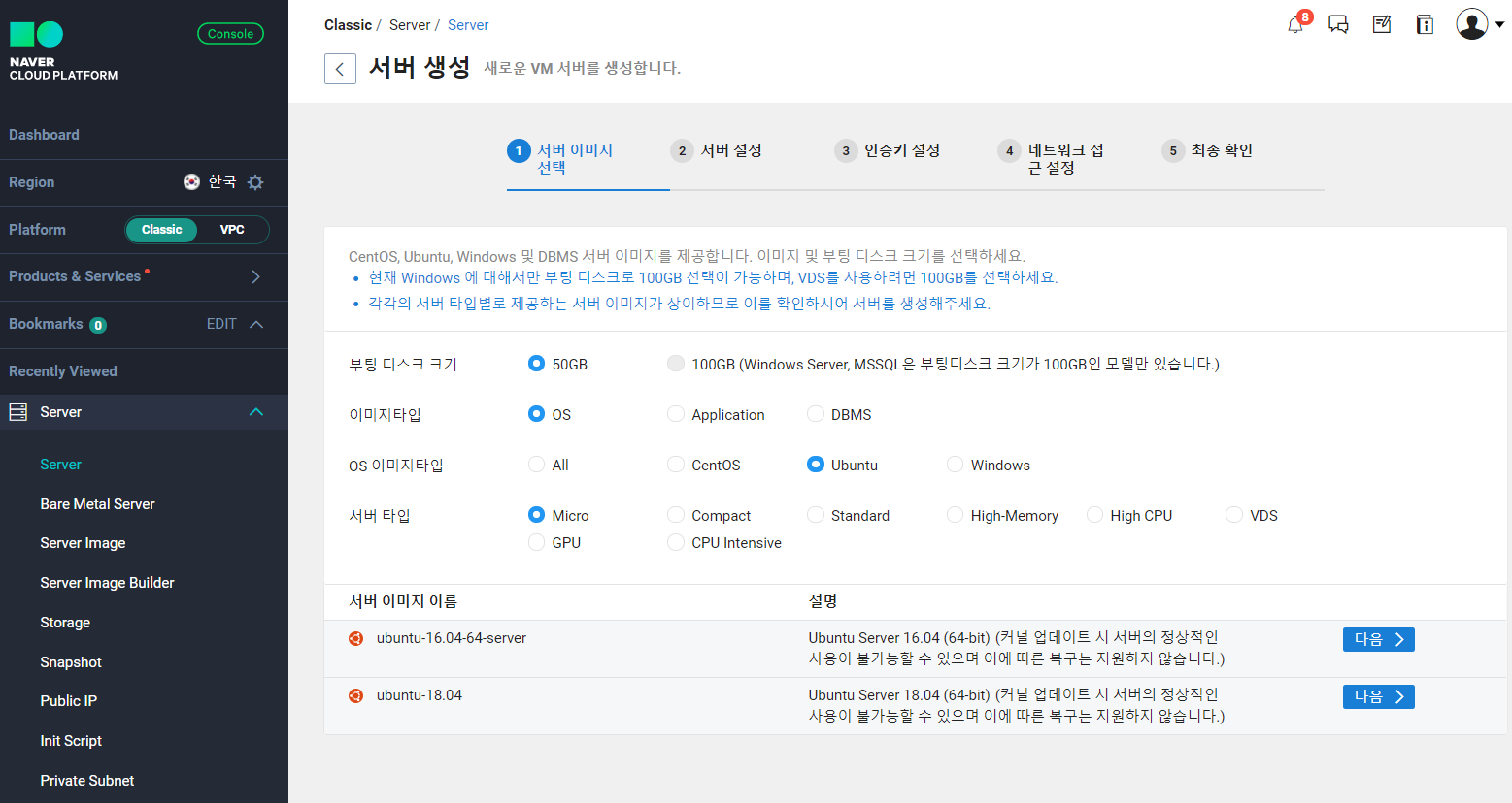 서버 구성을 위해 1년간 무료 버전을 사용할 수 있는 네이버 클라우드 플랫폼 서비스를 이용하기로 했다.
