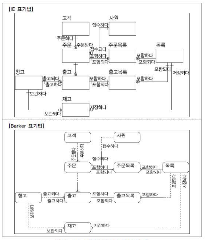 | 중앙 주위 | 창고, 고객, 사원, 재고 | 중심엔터티와 관계를 갖는 엔터티 |