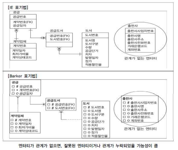 관계가 없는 엔터티는 부적절한 도출과 관계 누락을 의미한다.