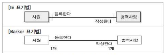 * ERD 에서는 존재적 관계와 행위에 의한 관계를 구분하지 않는다.