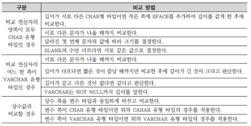 ☞ 문자 유형간의 비교 조건이 발생하는 경우?