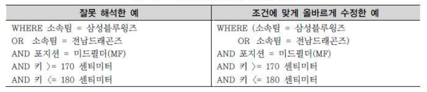 연산자들의 우선순위를 염두해서 WHERE 절을 작성해야 한다.
