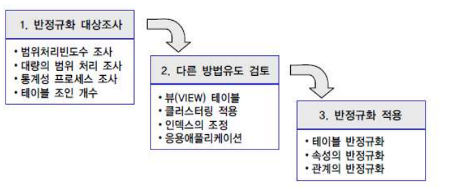 반정규화를 막현하게 중복을 유도하는 것 보다는 성능을 향상시킬 다른 방법들을 고려 후 반정규화를 적용해야 한다.