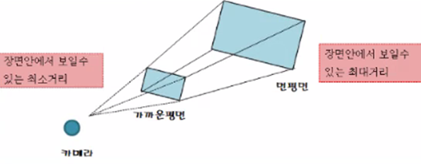 * 시야절두체 : 실제 카메라가 비추는 공간 ( 피라미드 모양 )