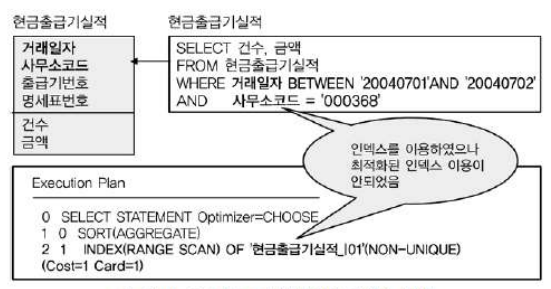 1) ( 거래일자+사무소코드 ) 순서 : BETWEEN 비교를 한 거래일자가 인덱스의 앞에 위치하기 때문에 범위가 넓어짐.