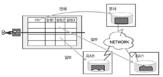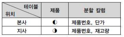 지사(Node)에 따라 테이블을 특정 칼럼의 값을 기준으로 Row를 분리한다.