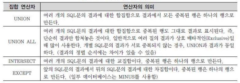 ∴ 집합 연산자는 2개 이상의 질의 결과를 하나의 결과로 만든다.