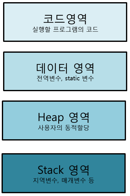함수 안에서 선언하면 stack 영역으로 들어간다.
